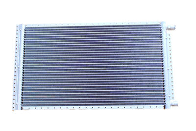 14" X 24" universal superflow condenser. Condenser was designed for use with R-134a but can be used with either R-12 or R-134a. Aluminum condenser with O-ring fittings.